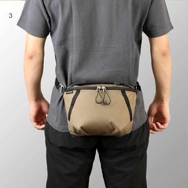 ショルダーベルトの長さを調整してウエストバッグとしての使用も可能。