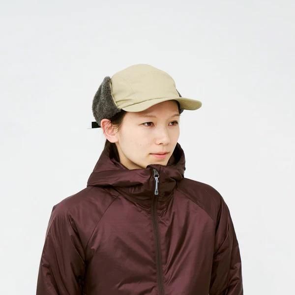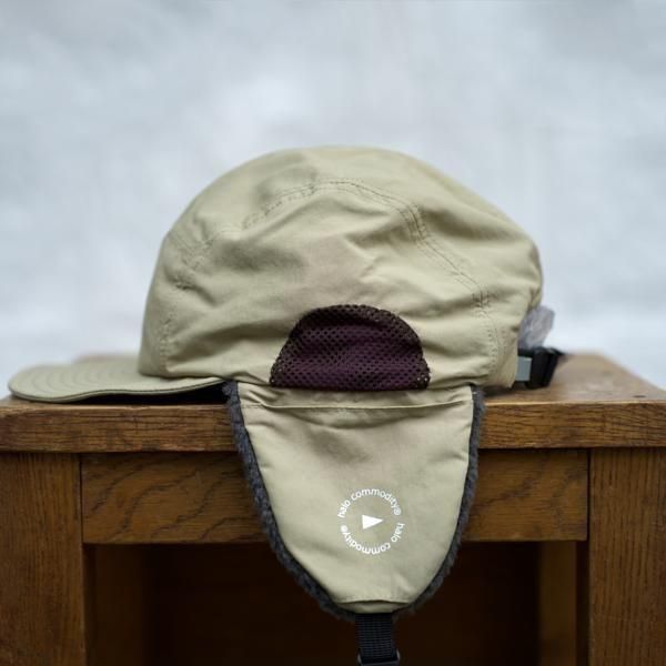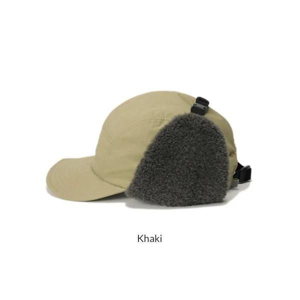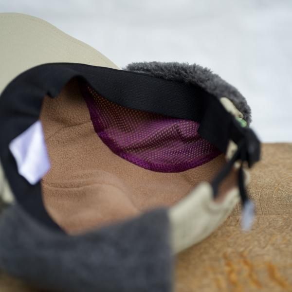 耳あてを下げた部分にはメッシュ生地を当てています。