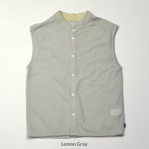 スマップボタンで開閉する前後リバーシブル仕様のユニセックスベスト。