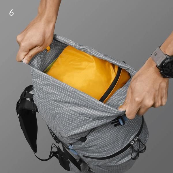 チューブトップ式の開口部はドローコードを引くだけで簡単に開閉。