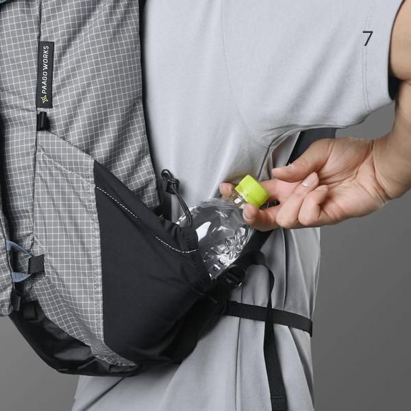 大型のサイドポケットは500mlのボトルが2本入る設計。