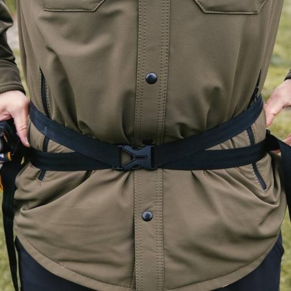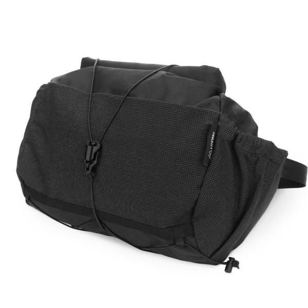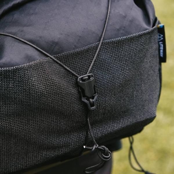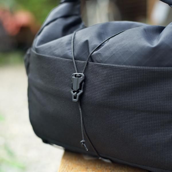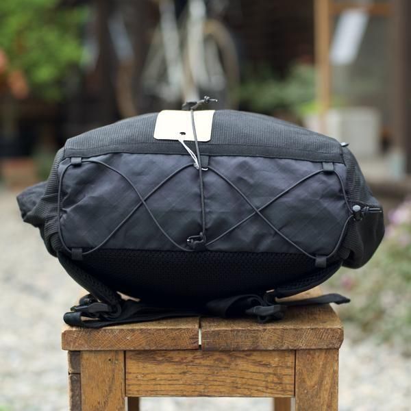 底部にストレッチコードを備え、脱いだアウターやギアの固定が可能です。