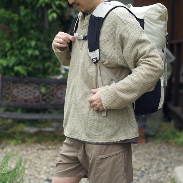 バックパックを背負った状態で、素早く脱ぎ着できます。