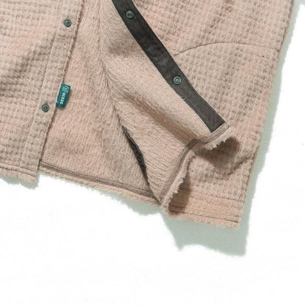 素早く着脱でき、ボタンの開閉で体温調整も可能なスナップカーディガン。