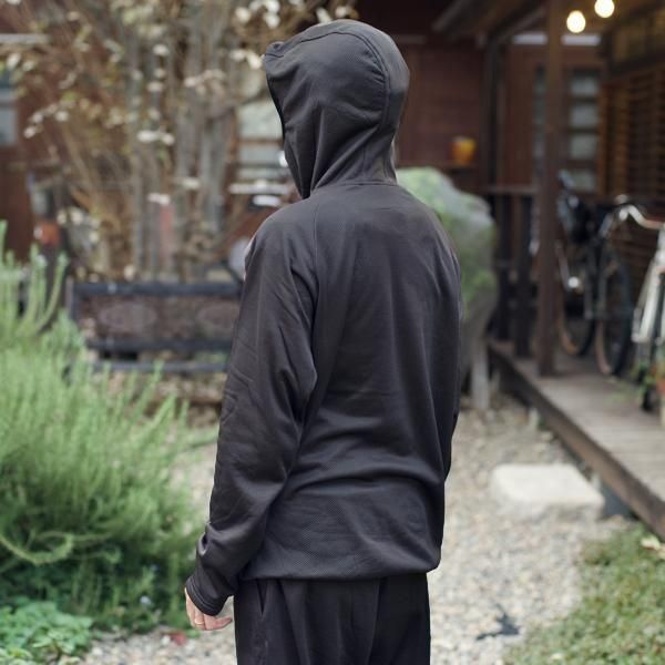ファスナーを省いた僅か約140gのミニマルフリースフーディ。