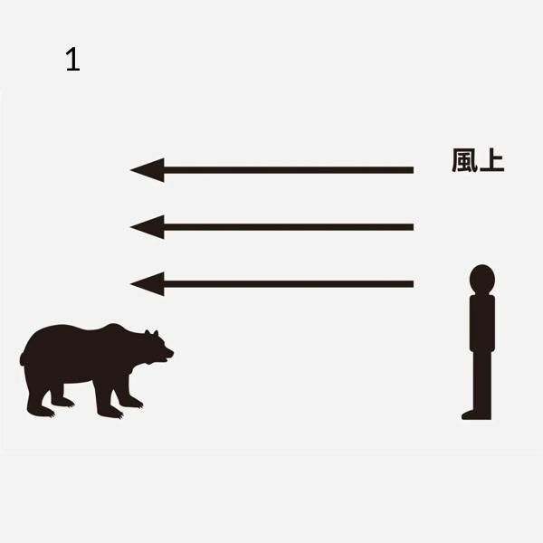 熊が接近している場合、S字に噴霧することで視界を遮る障壁を作ります。