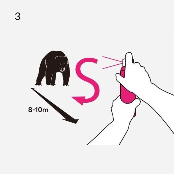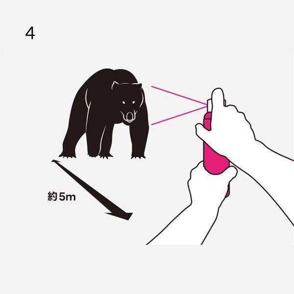 熊がさらに接近してきた場合、熊の顔に噴射口を向けて直接噴射してください。